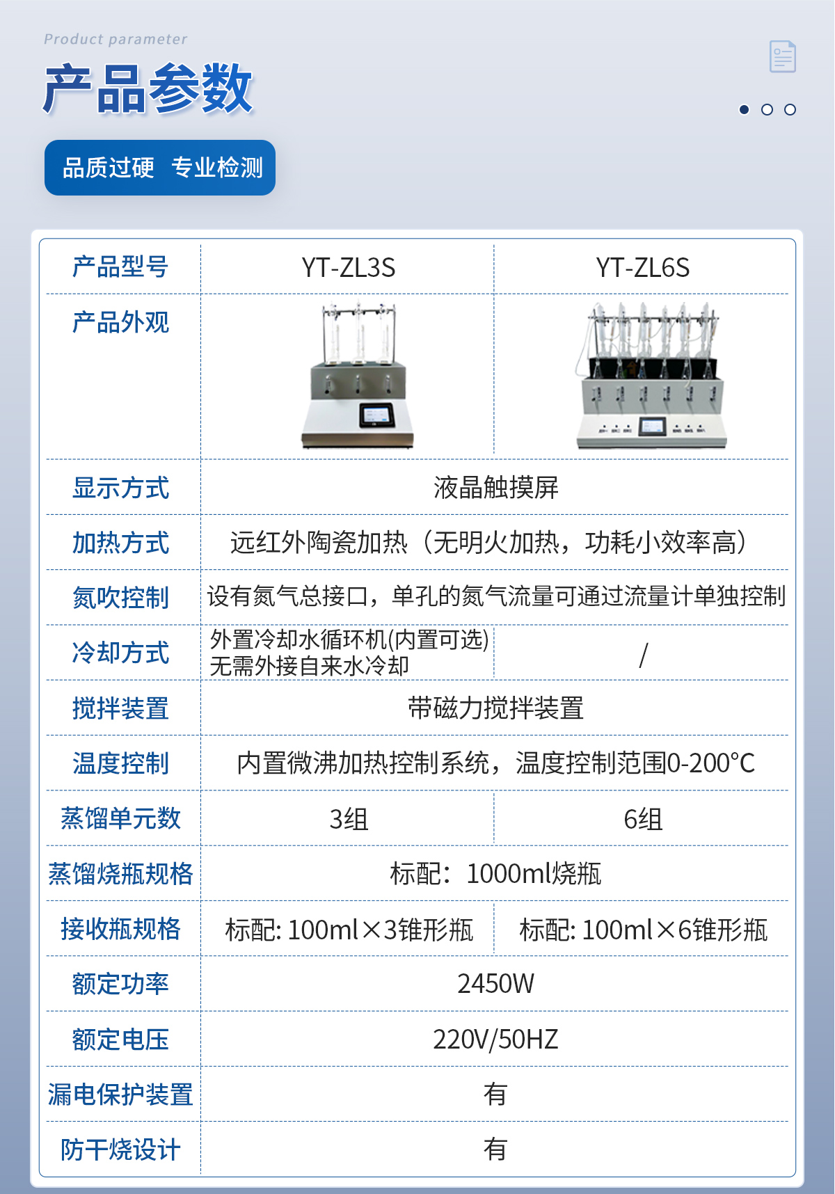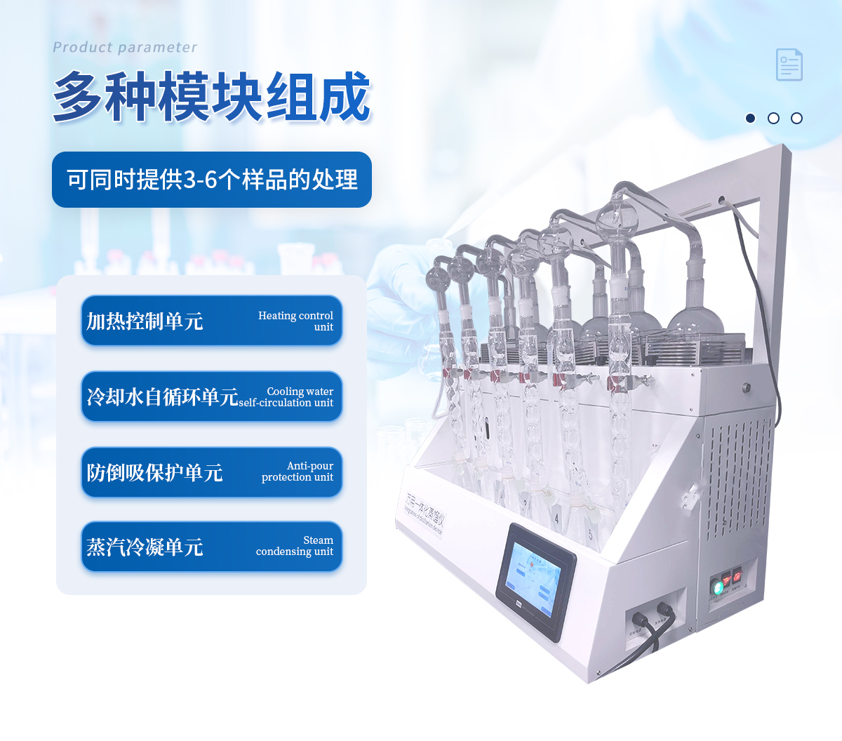 中藥二氧化硫殘留量測定儀主要由加熱模塊,蒸餾模塊,冷卻循環水模塊以及氮吹模塊組成。加熱模塊設置了高,中,低三檔加熱速率控制功能,可實現加熱效率的**控制面板;蒸餾模塊選用高硼硅材料,耐熱性好,堅固耐用;冷卻水循環系統可選用外置冷卻水循環機(內置可選),確保冷卻效果。氮吹模塊可外接氮氣發生器或氮氣鋼瓶,并配有高精度氣體流量計,嚴格控制氮吹速率