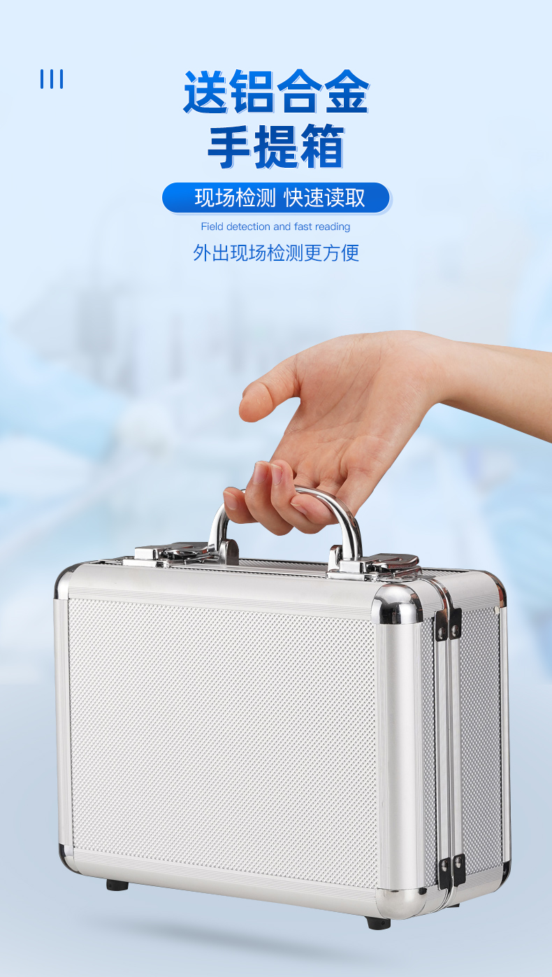 該設備為全新升級產品,大屏幕觸摸顯示屏,代替傳統按鍵。操作采用生物化學反應方法檢測ATP含量,ATP熒光檢測儀基于螢火蟲發光原理,利用“熒光素酶—熒光素體系”快速檢測三磷酸腺苷(ATP)。ATP拭子含有可以裂解細胞膜的試劑,能將細胞內ATP釋放出來,與試劑中含有的特異性酶發生反應,產生光,再用熒光照度計檢測發光值,微生物的數量與發光值成正比,由于所有生物活細胞中含有恒量的ATP,所以ATP含量可以清晰地表明樣品中微生物與其他生物殘余的多少,用于判斷衛生狀況。