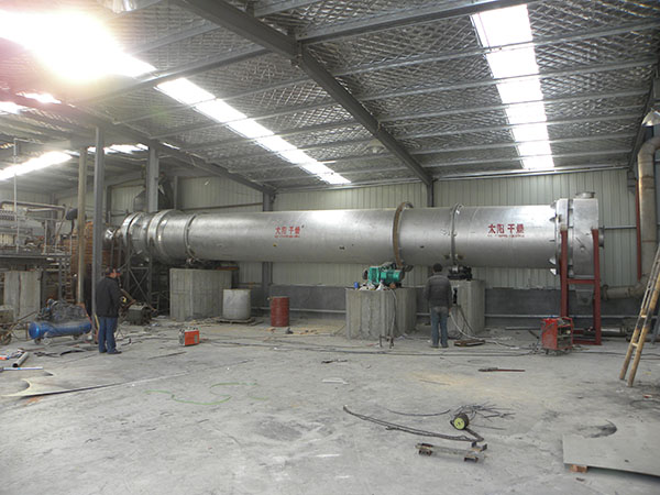 略帶傾斜并能回轉(zhuǎn)的圓筒體,濕物料從一端上部進(jìn)入,干物料從另一端下部收集。熱風(fēng)從進(jìn)料端或出料端進(jìn)入,從另一端上部排出。
