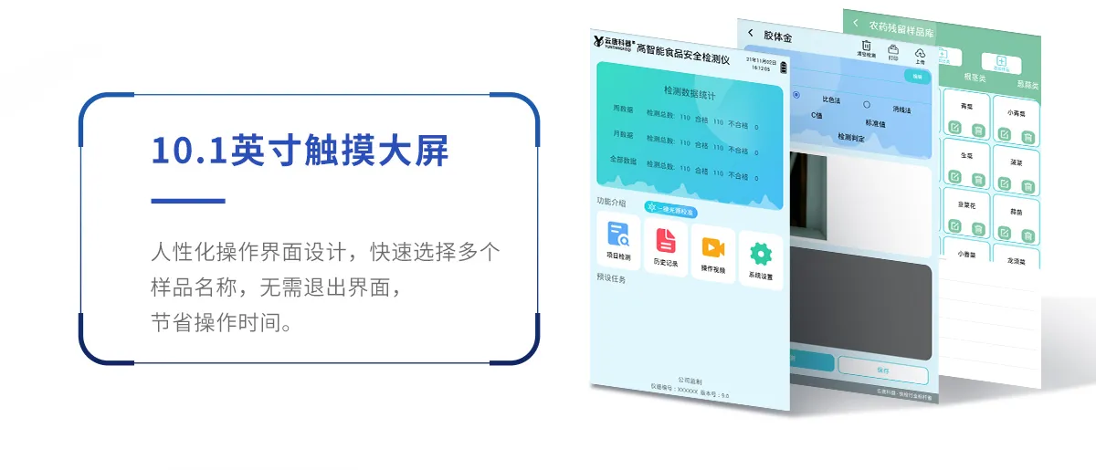 2、儀器功能包括:分光光度模塊、膠體金檢測模塊、新型農殘檢測模塊、數字化管理模塊、無線通訊模塊等,可以滿足同一軟件下實現所有檢測項目的檢測,并在同一窗口展示檢測結果。