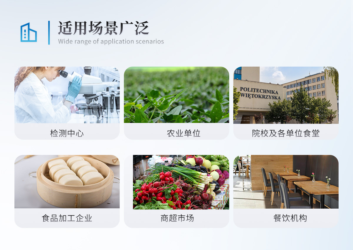 1、儀器采用手提式一體化系統檢測技術,將分光光度模塊、膠體金檢測模塊、新型農殘檢測模塊、數字化管理模塊、無線通訊模塊高度集成于一體,支持檢測200種食品安全檢測項目,同時預留升級檢測方法。