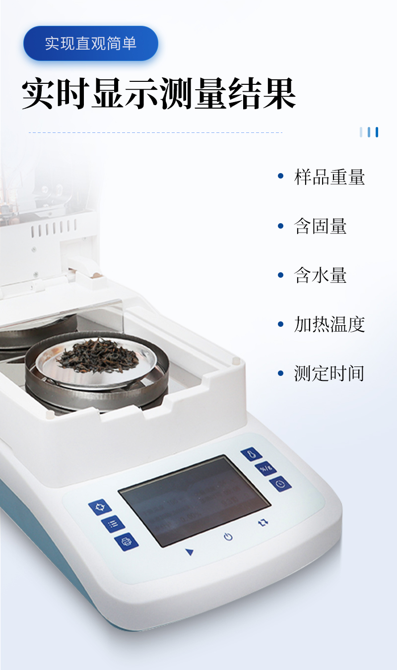 該系列快速水分測定儀應用了國際烘箱干燥法原理,測定結果與烘箱法水分測定具有良好的一致性,工作效率卻遠遠高于烘箱法水分測定,一般樣品只需要幾分鐘即可測量完畢,因此受到廣大用戶的青睞與好評。